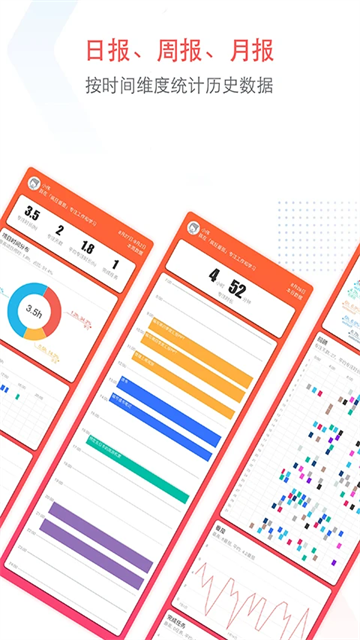帮您分析整体的工作时间和任务完成情况,每天有多少时间在工作以及工作的时间都花到哪些项目,让时间有迹可循。