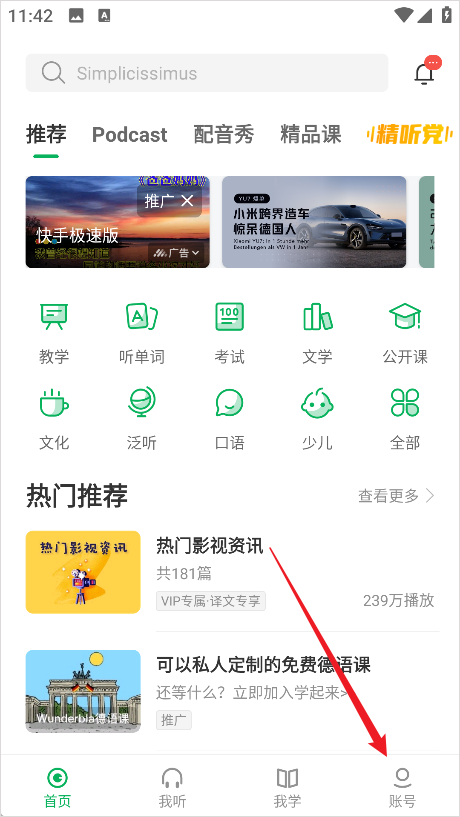 听力集锦:日常对话、欧标速成、德语影视、演讲访谈等丰富德语资源。