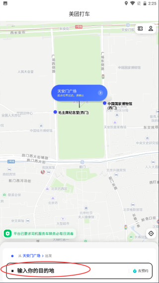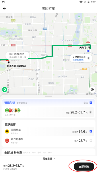 4、等待美团打车系统计算好价格之后就可以点击“立即叫车”了