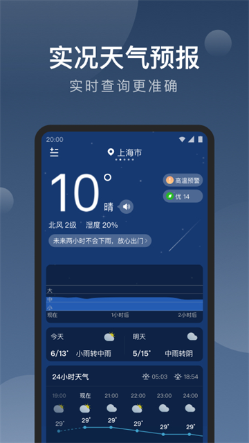 3、实时监测:空气质量,PM2.5等6项空气质量指数实时看,24小时天气情况逐时看。