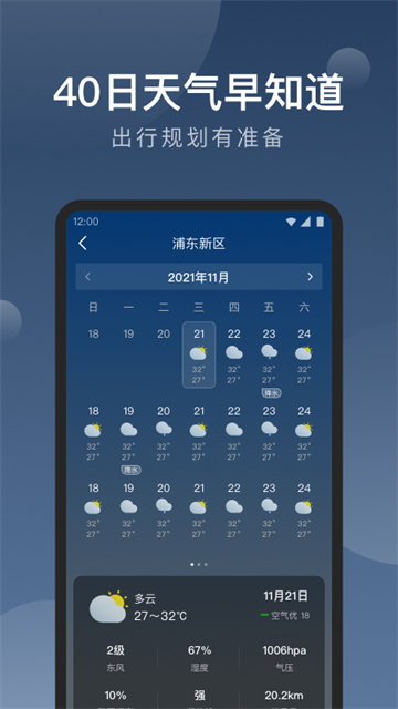 1、详细15天预报:阴晴雨雪,气温气压,风力风向,空气质量,出行无所畏惧。