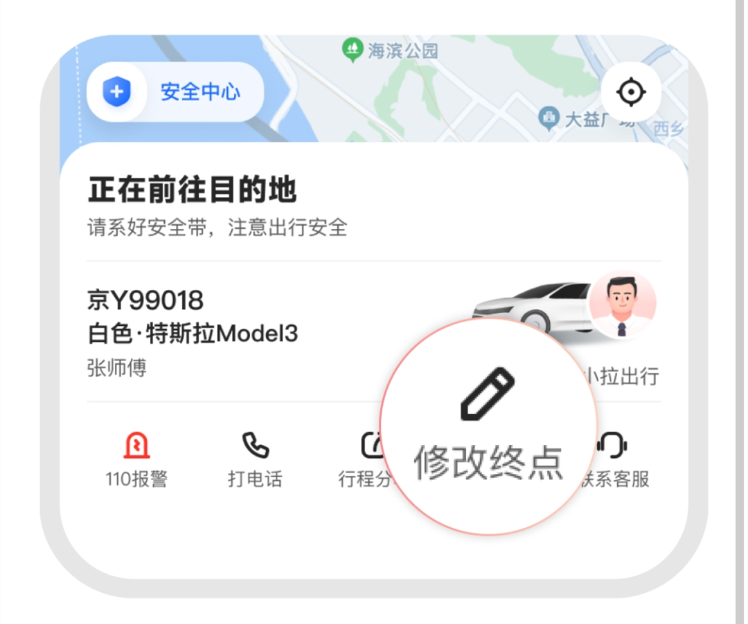1、建议您行程前确定好目的地,若途中需变更目的地,请礼貌与司机协商,达成一致后再使用乘客端【修改地址】功能。