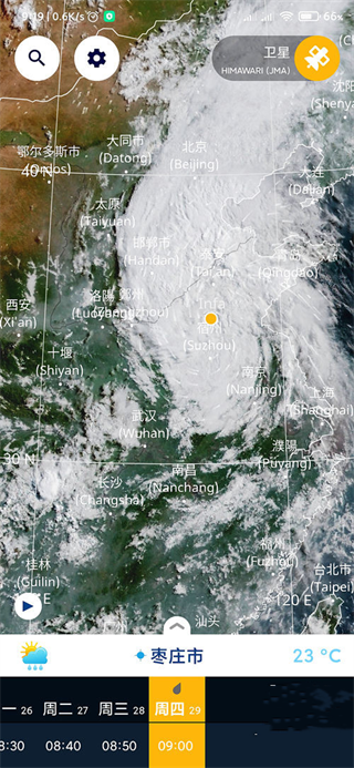 1、打开Ventusky后,可以通过点击左上角的放大镜图标快速搜索目标城市位置。如果您更习惯手动操作,也可以直接拖动画面至所在区域,点击地图上的任意位置,屏幕底部会显示相应地名,例如“常州市”。点击地名后,即可查看当地的天气预报,包括降水量、风速风向等信息,地图上的卫星云图会根据时间自动更新,动态呈现天气变化。