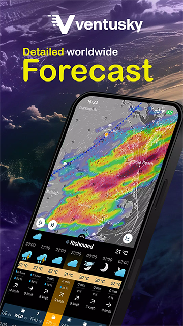 欢迎体验Ventusky第50版——我们迄今为止最具野心的全面改版,旨在让天气探索体验比以往更流畅、更清晰、更自然。