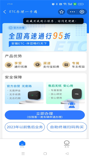 1、ETC办理:为用户提供徽通卡在线申请的通道;