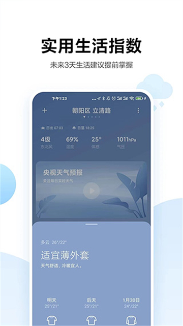 - 生活建议:支持带伞建议、穿衣建议、防晒建议、运动、限行洗车等实用生活信息