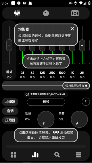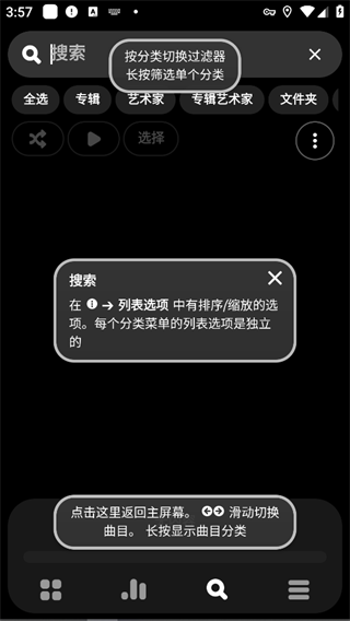 在主界面左右滑动切换曲目。滑动更多次切换分类。下滑动或者点击即可显示当前分类