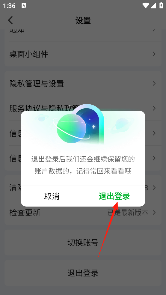 4、弹出弹窗之后,再次点击【退出登录】即可