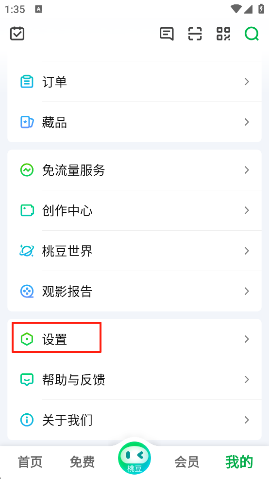 2、进入【我的】界面之后,下拉找到【设置】并点击