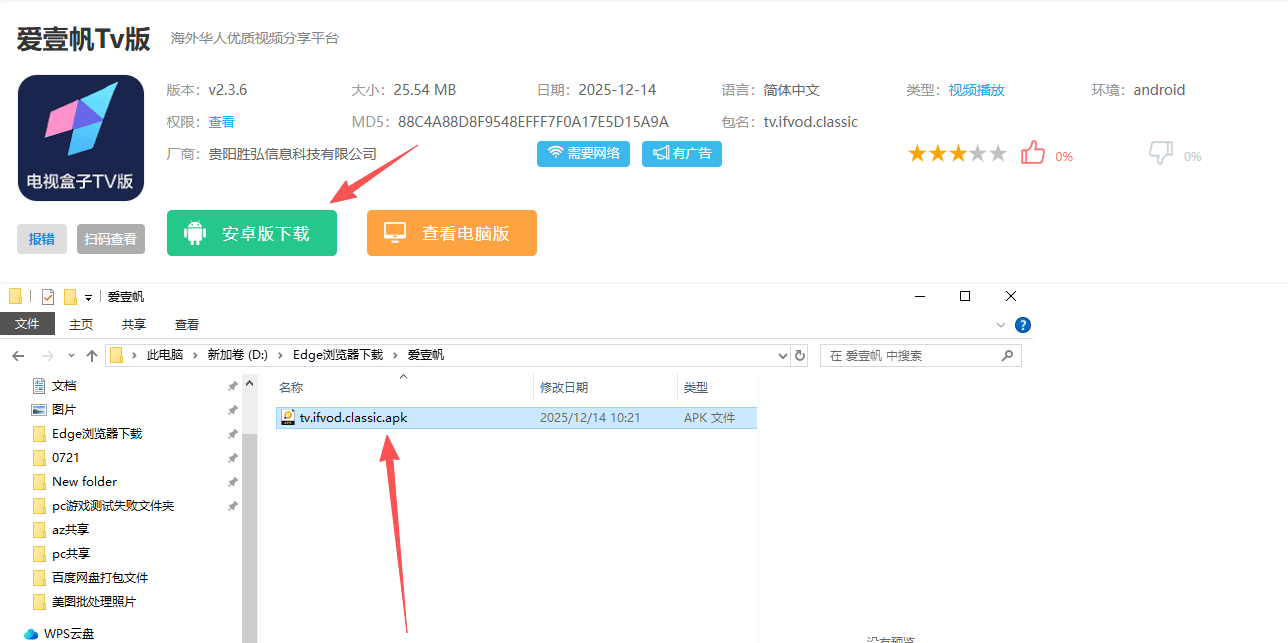 3、在本站点击下载爱壹帆TV版APK文件至U盘。