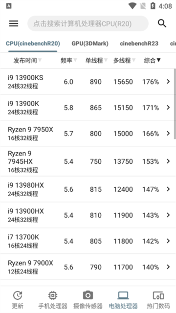 查看最新的手机CPU单核分、多核分、GPU分、总分。