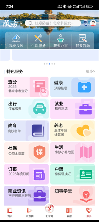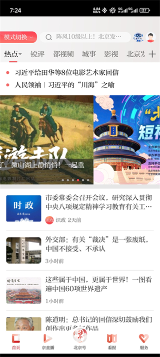 1、打开北京日报App,在首页可以看到新闻资讯等内容