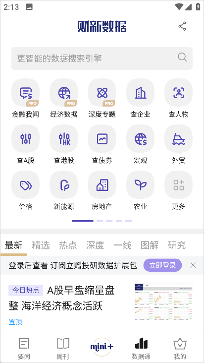 财新数据通提供基础和特色财经数据库,一站式获取专业数据、权威新闻、智库解读。