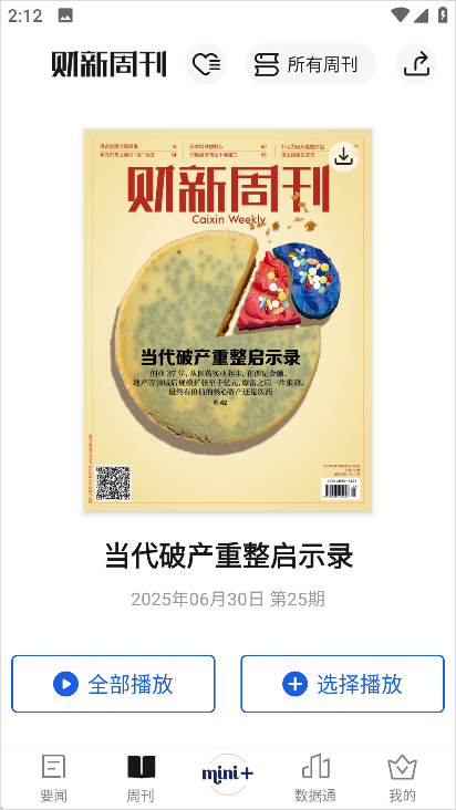 3、返回主界面,点击周刊,往上滑动可以查看更多周刊,看到喜欢的支持订阅期刊;