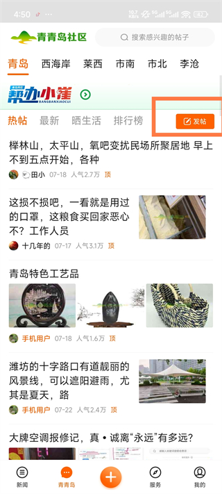 青岛新闻网App怎么发帖?