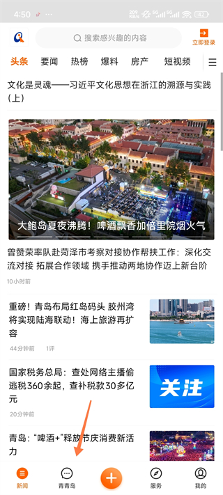 1、打开青岛新闻网App,点击青青岛板块