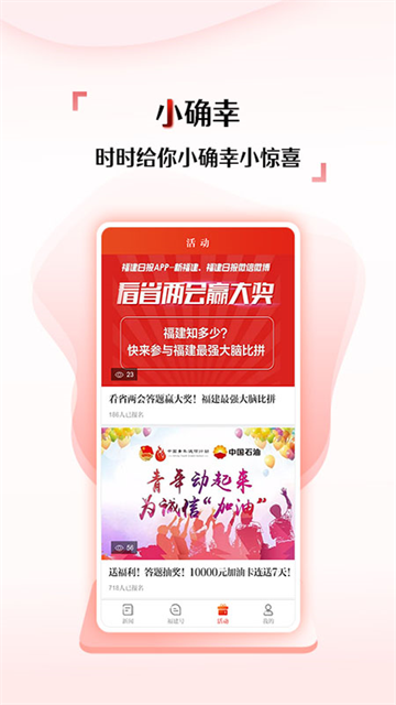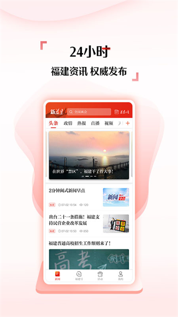 围绕中心、服务大局,立足八闽、胸怀世界,专注时事、关切民生,传播政策、解读事件, 24小时不间断更新,一端网罗权威、新鲜的新闻资讯,第一时间速递到手机屏。