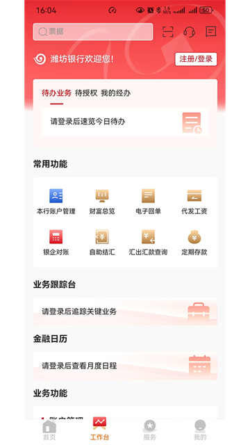 1、在本站下载好后,打开app来到首页转账汇款、账户管理、电子回单等多项自助服务都可以在该页面操作。