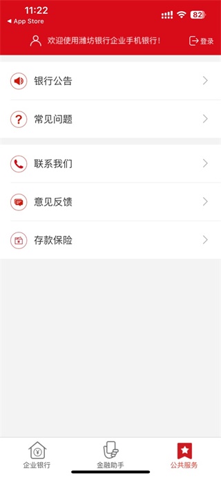 3、公共服务部分银行公告会及时发布给大家,如有常见问题可以在这里查看解决方案或联系客服。