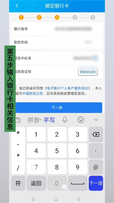 5.输入银行卡相关信息,获取验证码。