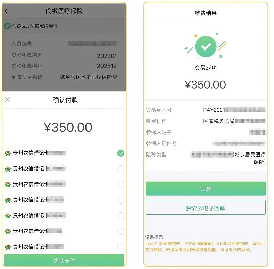 步骤三:选择付款银行卡,缴费成功