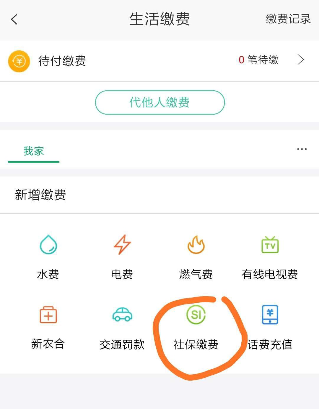 第二步:点击“社保缴费”