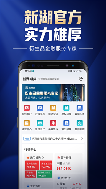 新湖期货App内置热门行情分析,金融服务专家,专业策略及时推送,帮助用户抓准投资机会,让您在期货市场高效掘金。新湖期货开户交易App让每一位投资者都能享受安全、便捷、快速的期货投资服务,想要投资的朋友们欢迎前来本站下载体验!