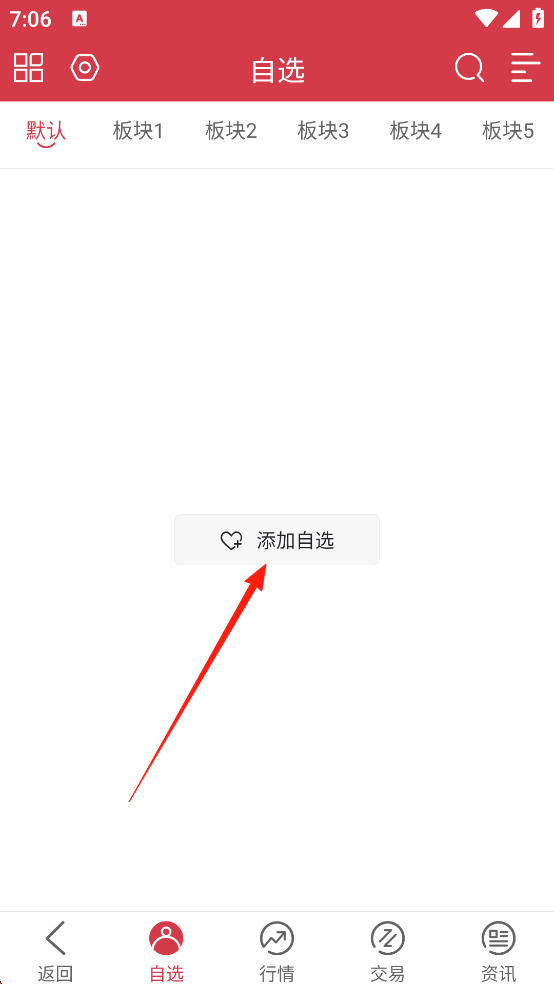 3、点击添加自选