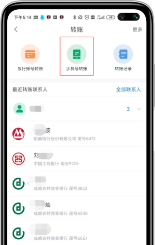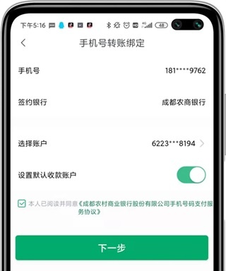 成都农商银行app开通手机号码支付后如何进行手机号码转账