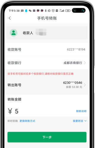 支持账号转账,手机号转账,转账0费用