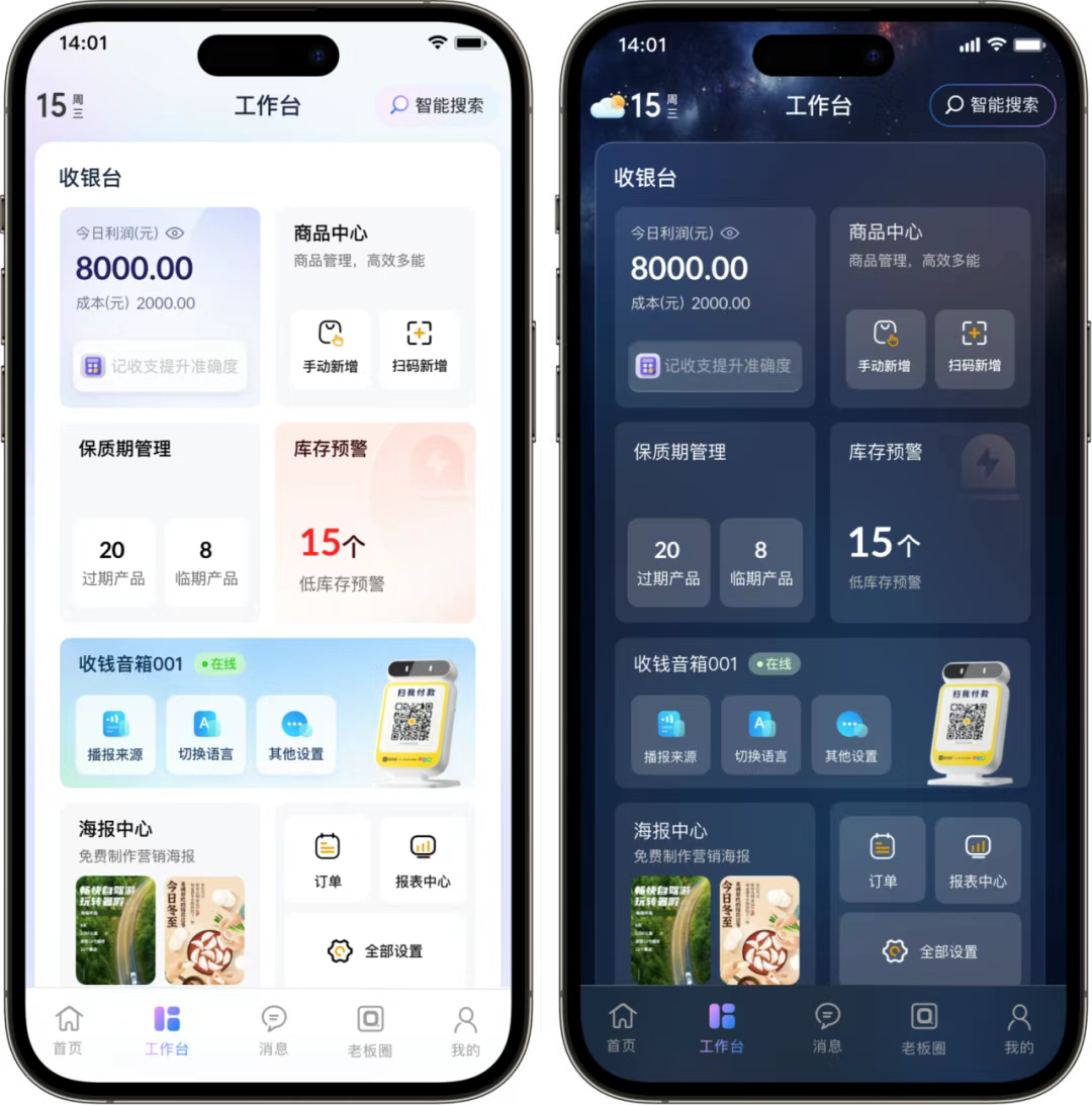 此外,“工作台”能根据商家所属行业,智能匹配对应操作面板,帮助商家高效便捷、智能操控。