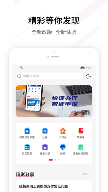 FESCO app是一款由北京外企科技有限公司专门为员工们打造的自助服务平台,提供了社保查询、公积金查询、健康评估、法律咨询等诸多功能,用户可以随时随地的查询社保业务。并且,在主页上,你可以选择生育福利服务点查看你可以领取的生育津贴,也可以在社会保障中心查看你的社保信息,还可以在补充健康保险区支付自己的健康保险费用,使用起来非常的方便。另外,秉承着“用户使用场景碎片化,填写内容清单化,操作流程引导化”的设计理念,还将FESCO、企业、员工三方进行连接,实现业务流程线上化,让办公效率变的更加高效,省时又便捷。