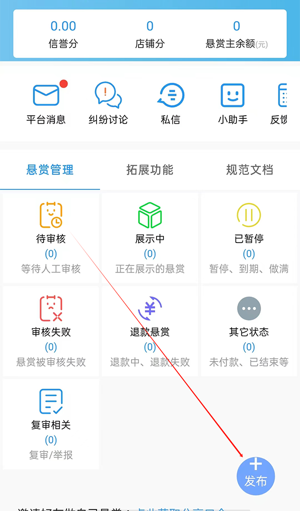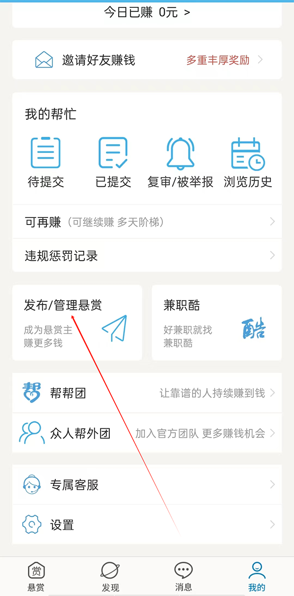 2、点击发布/管理悬赏