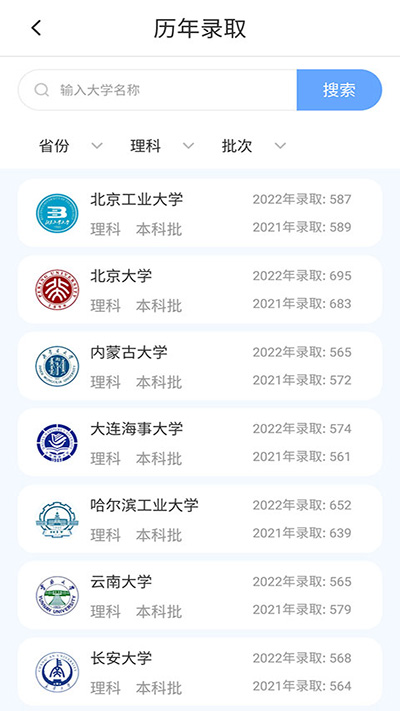 2、通过【搜索】或者【筛选】功能可以更加精准地定位到你想要查找的院校的历年录取分数线。