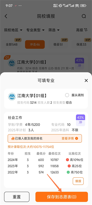 5、将你看上眼的学校保存到志愿表里可以方便你后续选择心仪的学校