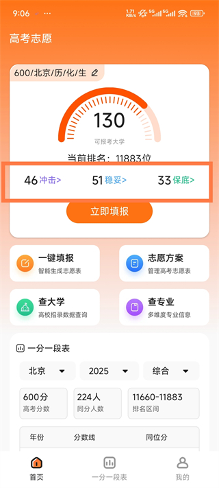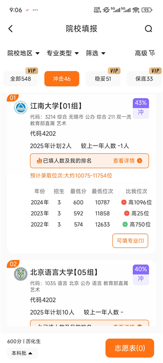 4、点击冲击板块可以看到这里会为你推荐学校