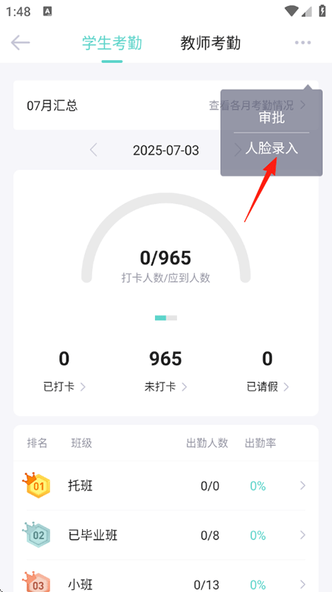 3、需要注意的是游客模式是无法进行人脸录入的,所以解锁更多操作园长需登录账号。