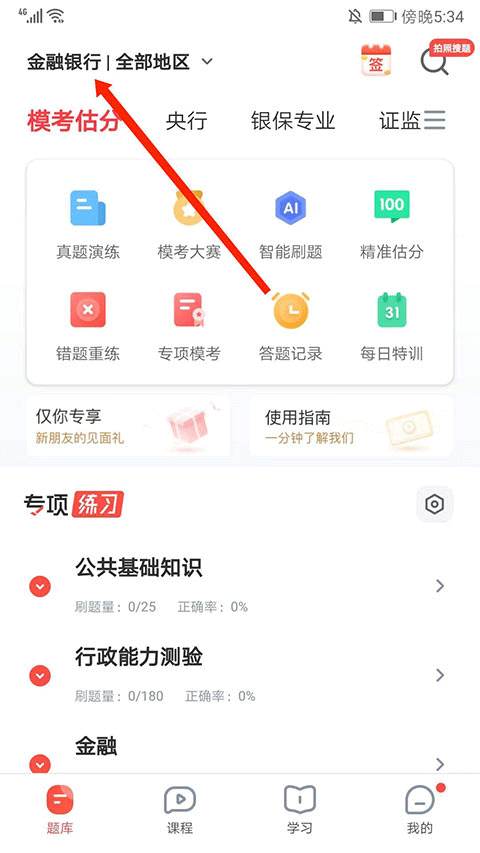 4、返回应用主页,可看到左上角的考试目标和报考地区,省考设置完成。