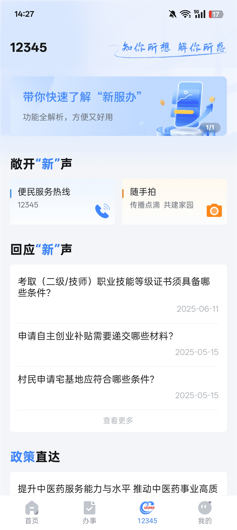 老年证、再生育证、就业失业登记证、计划生育健康证、五保证等在线办理,可在线查询办事指南,一次就办成,何必跑多趟!