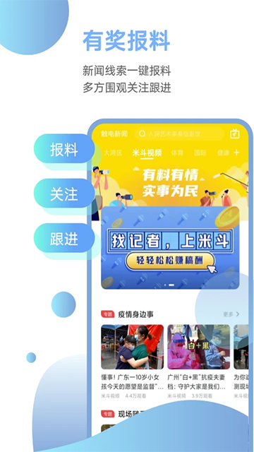 4、支持用户随手拍、随手报新闻。平台设立“有奖报料”机制,凡是被采纳的优质爆料不仅能曝光社会问题,还能获得官方奖金鼓励。让每一位用户都成为“触电记者”。