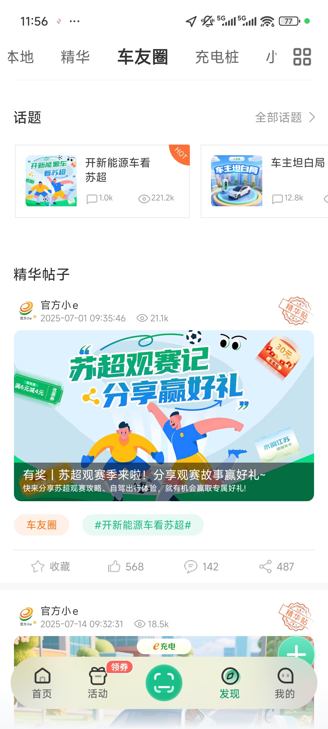 5、在"e友车圈"板块可以分享用车心得,获取最新行业资讯,参与专属优惠活动,与全国车友共建绿色出行生态
