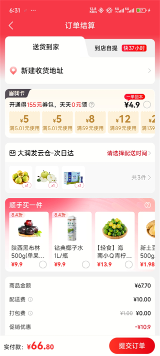 5、最后输入地址提交订单即可