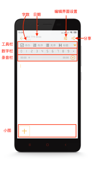 1、打开便签,首先进入的就是首页,下图是首页的主要按钮功能说明。
