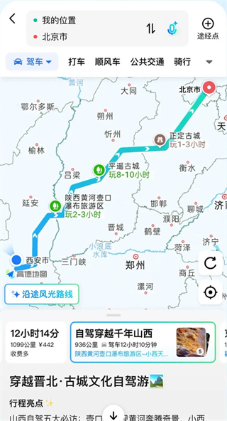 提供包含驾车丶打车丶公交丶骑行丶步行丶货车丶摩托车丶新能源等多种出行方式的智能导航