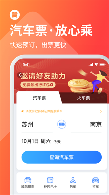 随时随地预订汽车票,无需排队,支持扫码直接上车;
