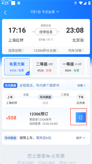购票便捷,支持在线抢票、在线选座、选择车厢