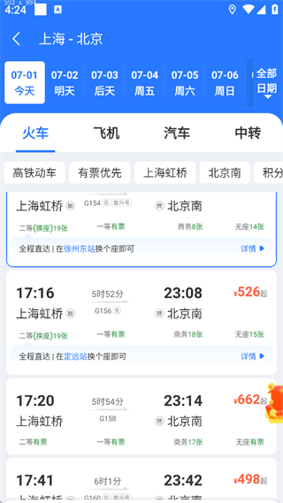 支持流水班等特殊班次在线预订,部分城市支持购买携童票、儿童票等特殊票种;