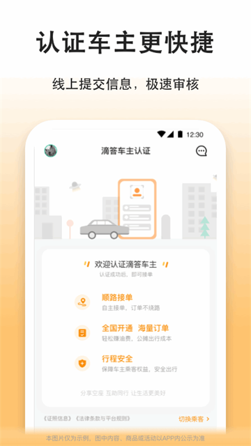 滴答滴出行司机版app内司机师傅可以自己发布顺路订单,等待有无乘客顺路订单,接送乘客,并且,行程全程视频监控,也有安全保证性,既能保证乘客的安全,也能保证广大司机师傅们的安全。滴答出行司机版致力提供一个更安全,更公平,更赚钱,更简单的平台。