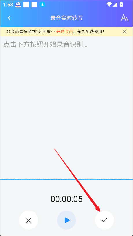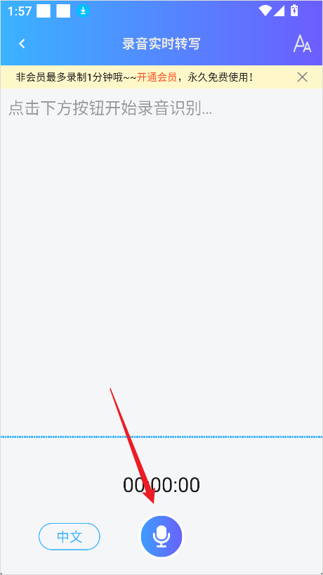 1、进入软件后点击首页位置的录音实时转文字