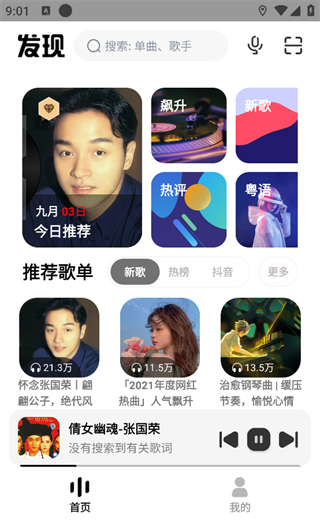 2、首页会为用户推荐最新、热门的音乐,还设置了多元化的音乐榜单,听歌更方便